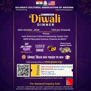 By Gujarati Cultural Association of ArizonaPast Events 2024All 2024Diwali 2024Navratri Celebration 2024Killol in Phoenix Gujarat dayDramaPicnicHolimakar sankranti Load More